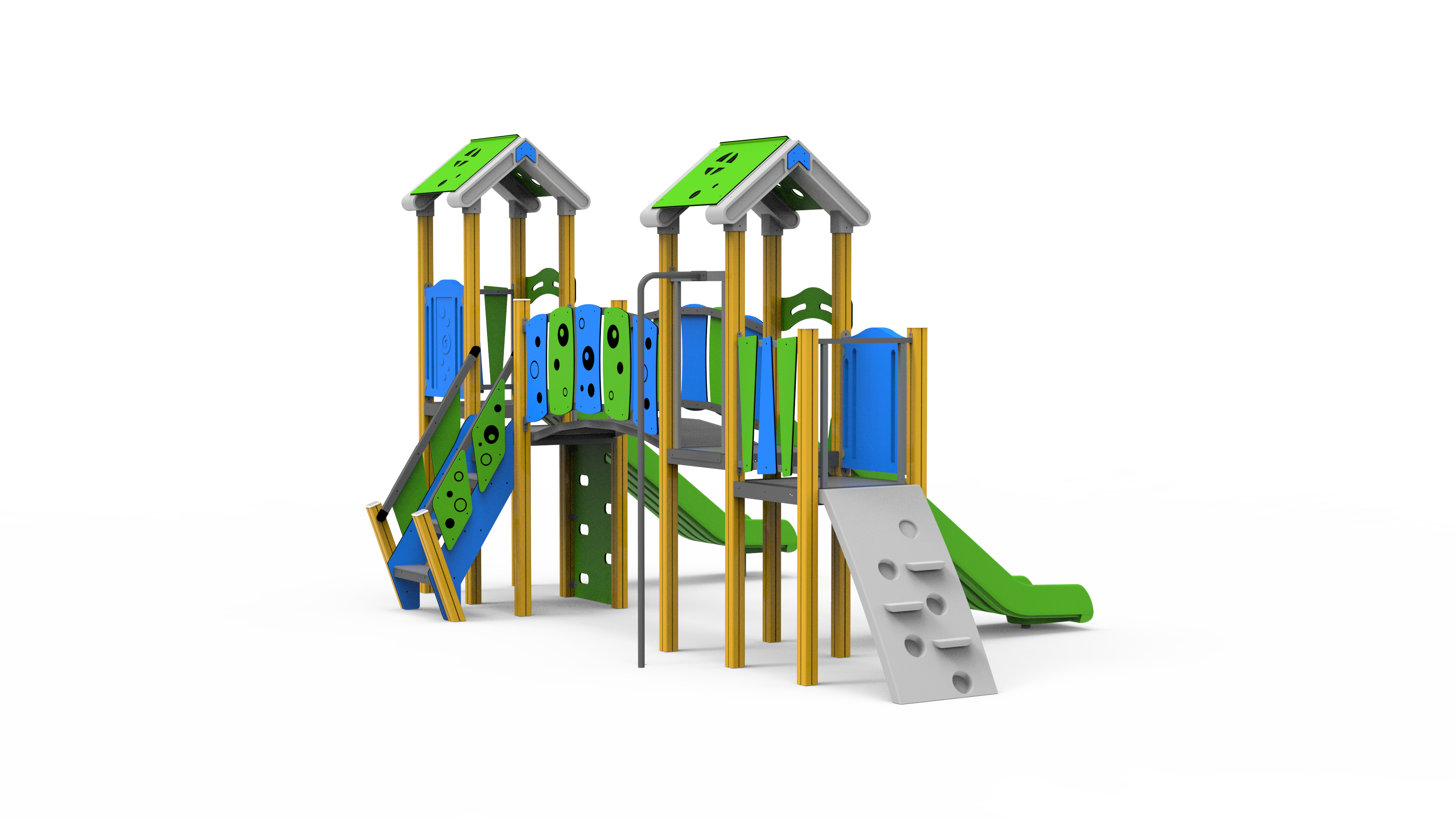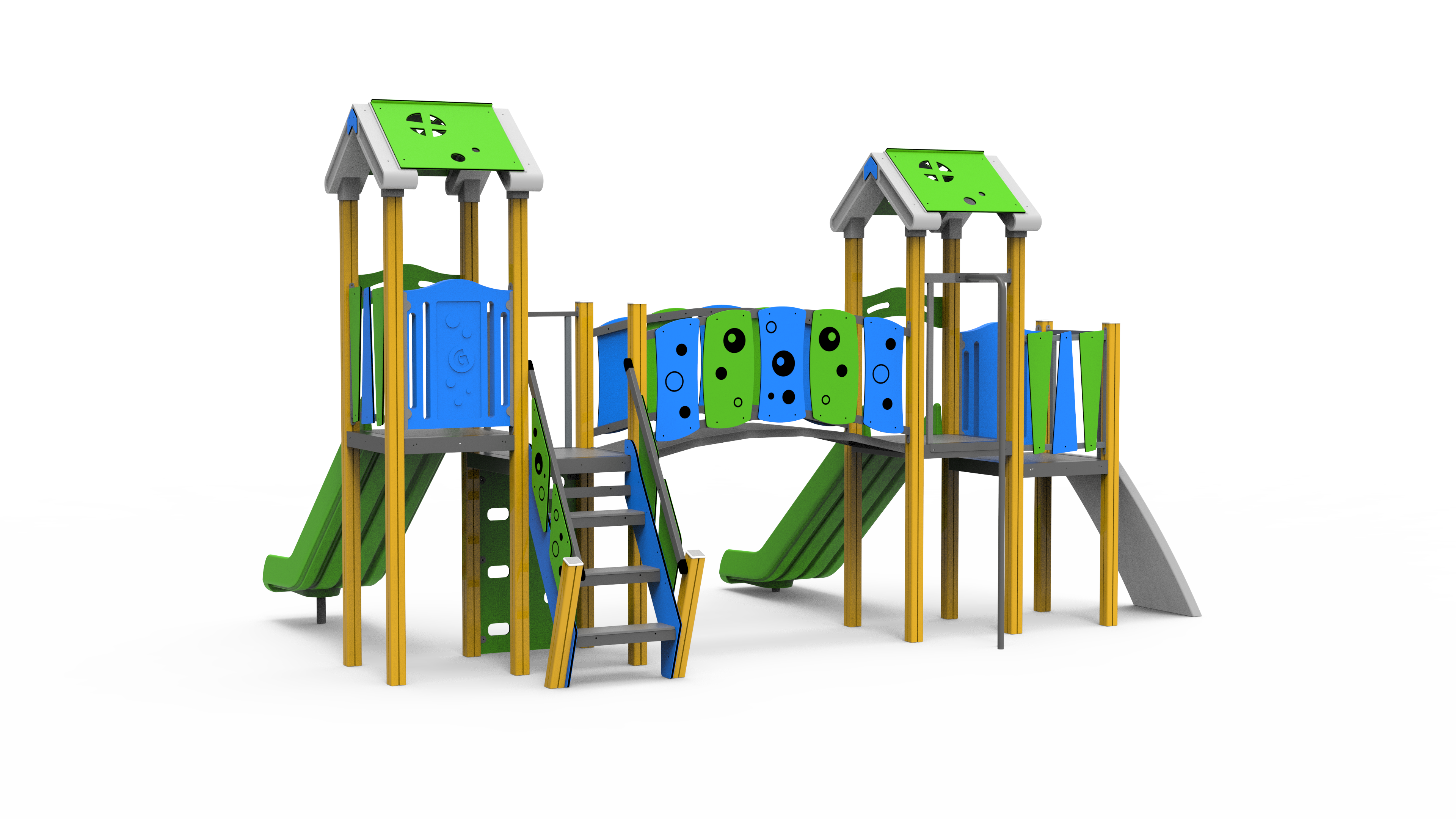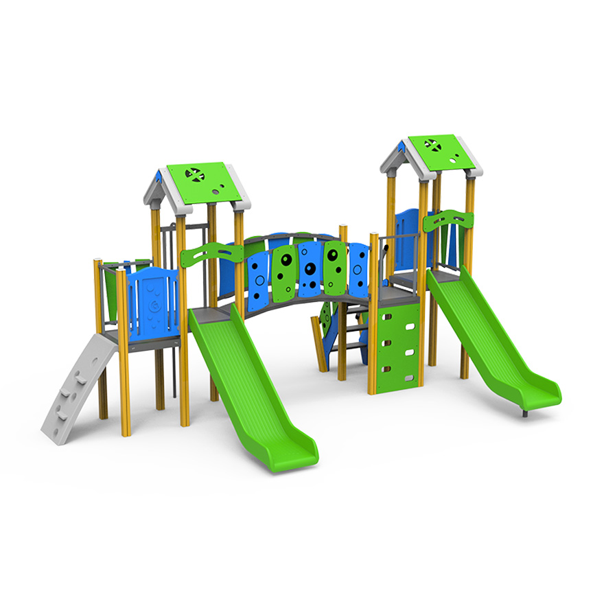 – 2 toboganes únicos de HDPE con travesaño