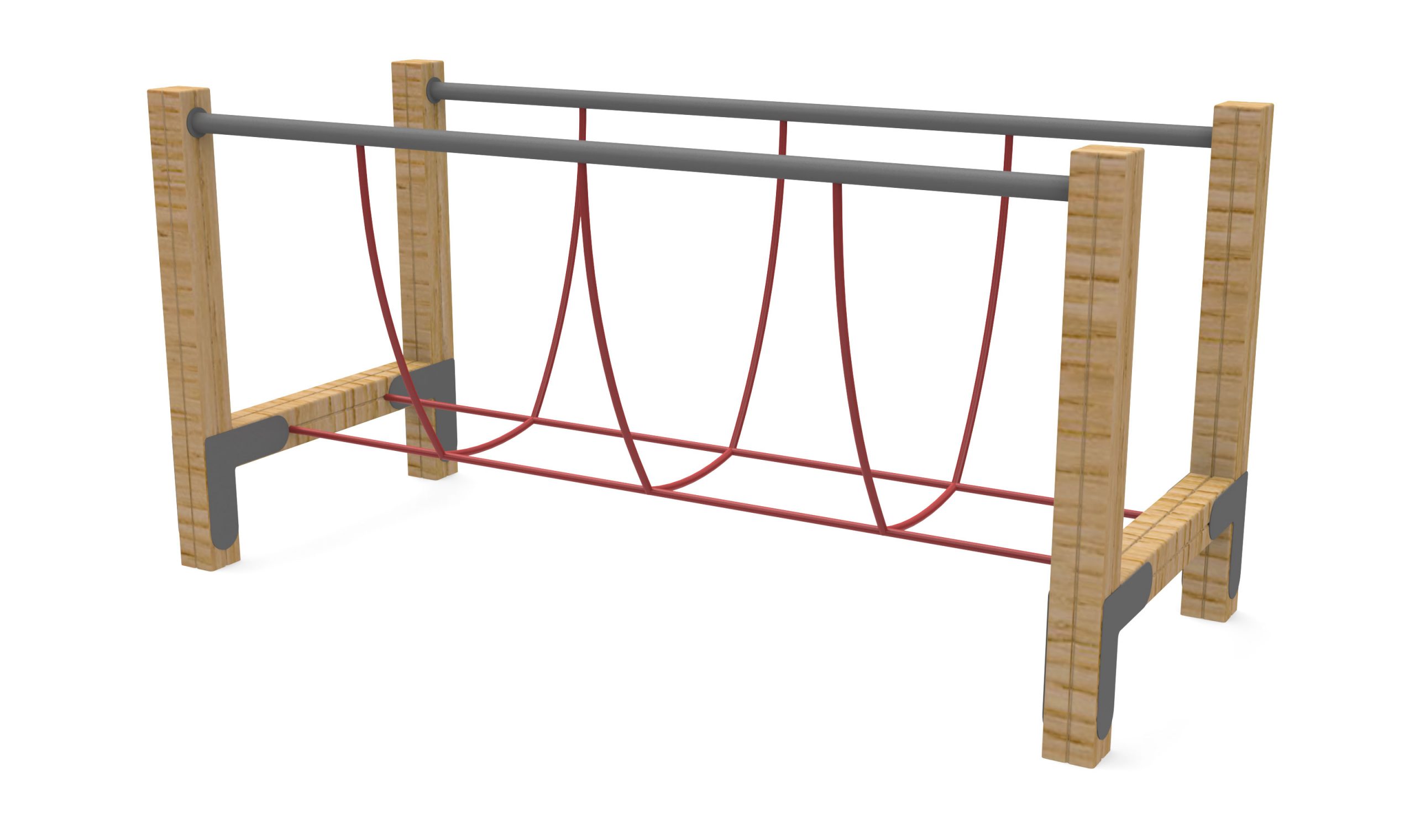 – Estructura de madera laminada de sección trébol de 90×90 mm con elementos de unión en chapa metálica con recubrimiento de polvo.